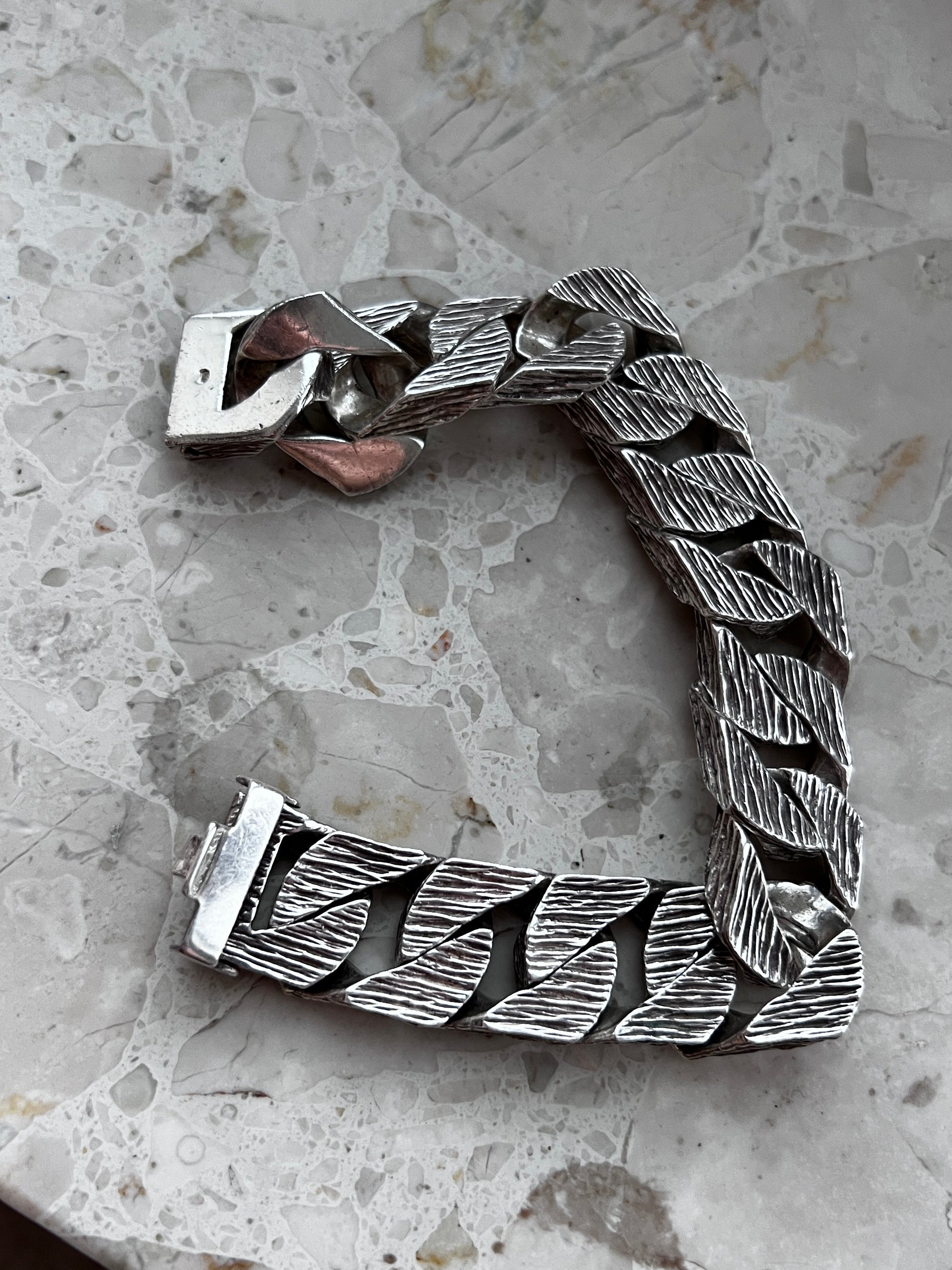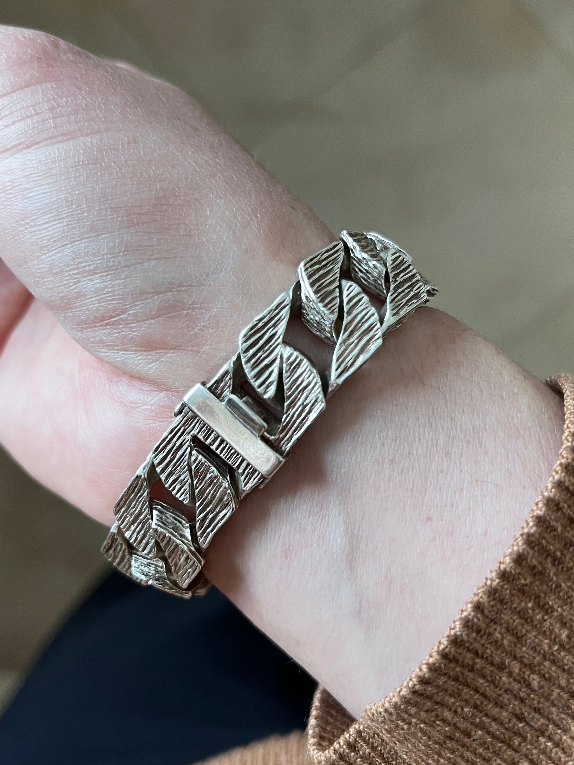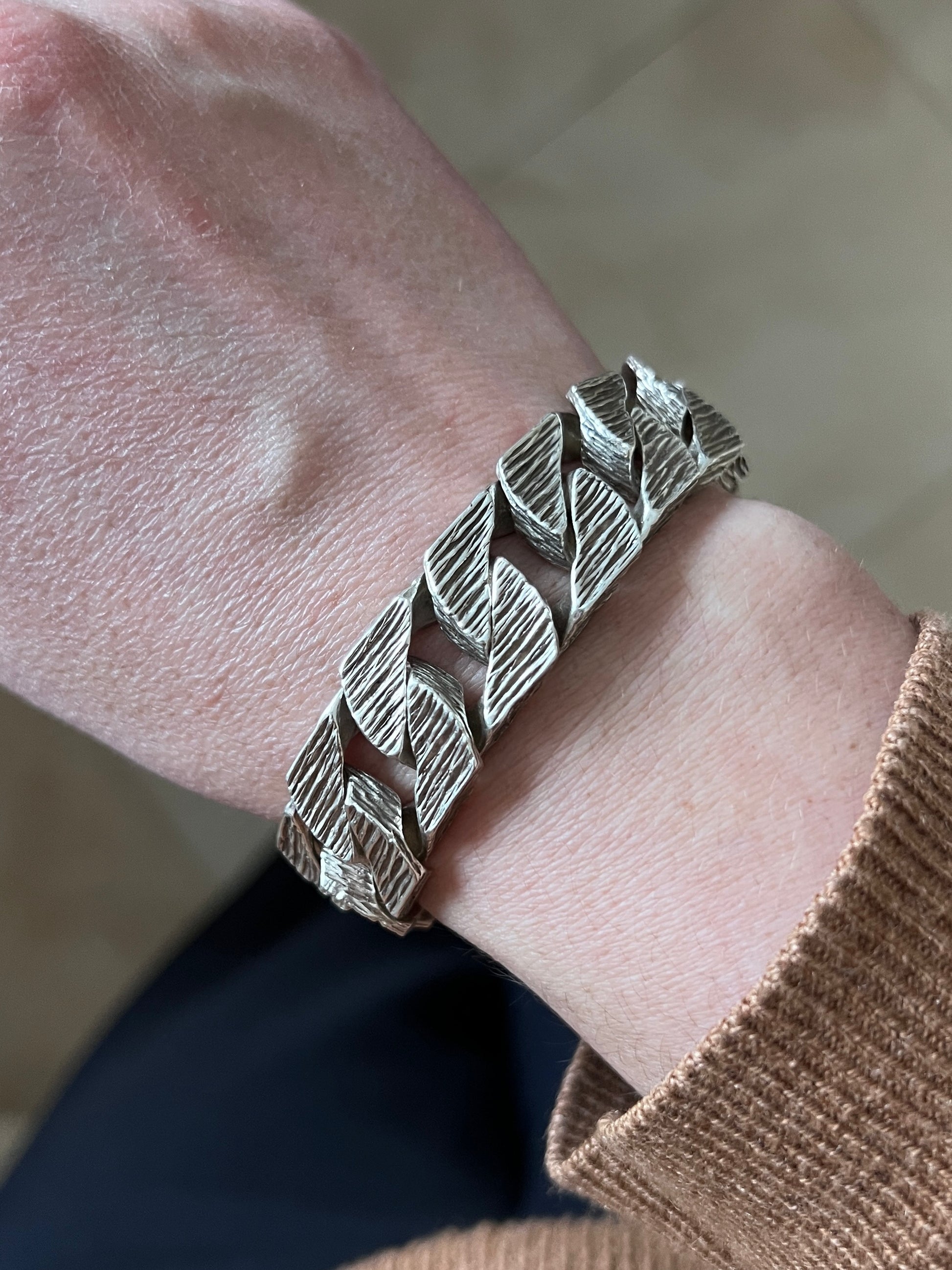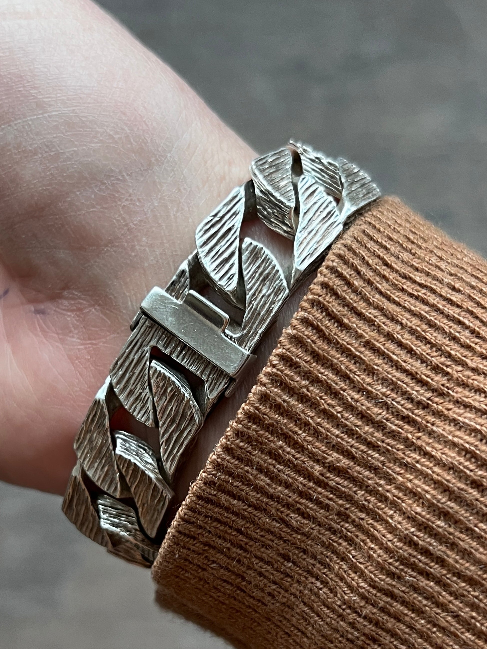 Bransoleta „Męska Sprawa” – srebro, rzeźbione ogniwa