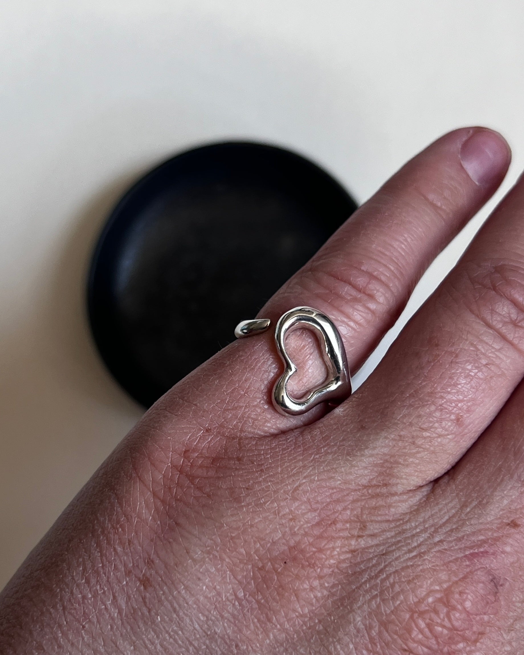 Pierścionek z lat 90., wykonany ze srebra próby 925, reprezentuje wszystko, co najważniejsze w stylu Peretti: minimalizm, emocję i organiczne piękno.