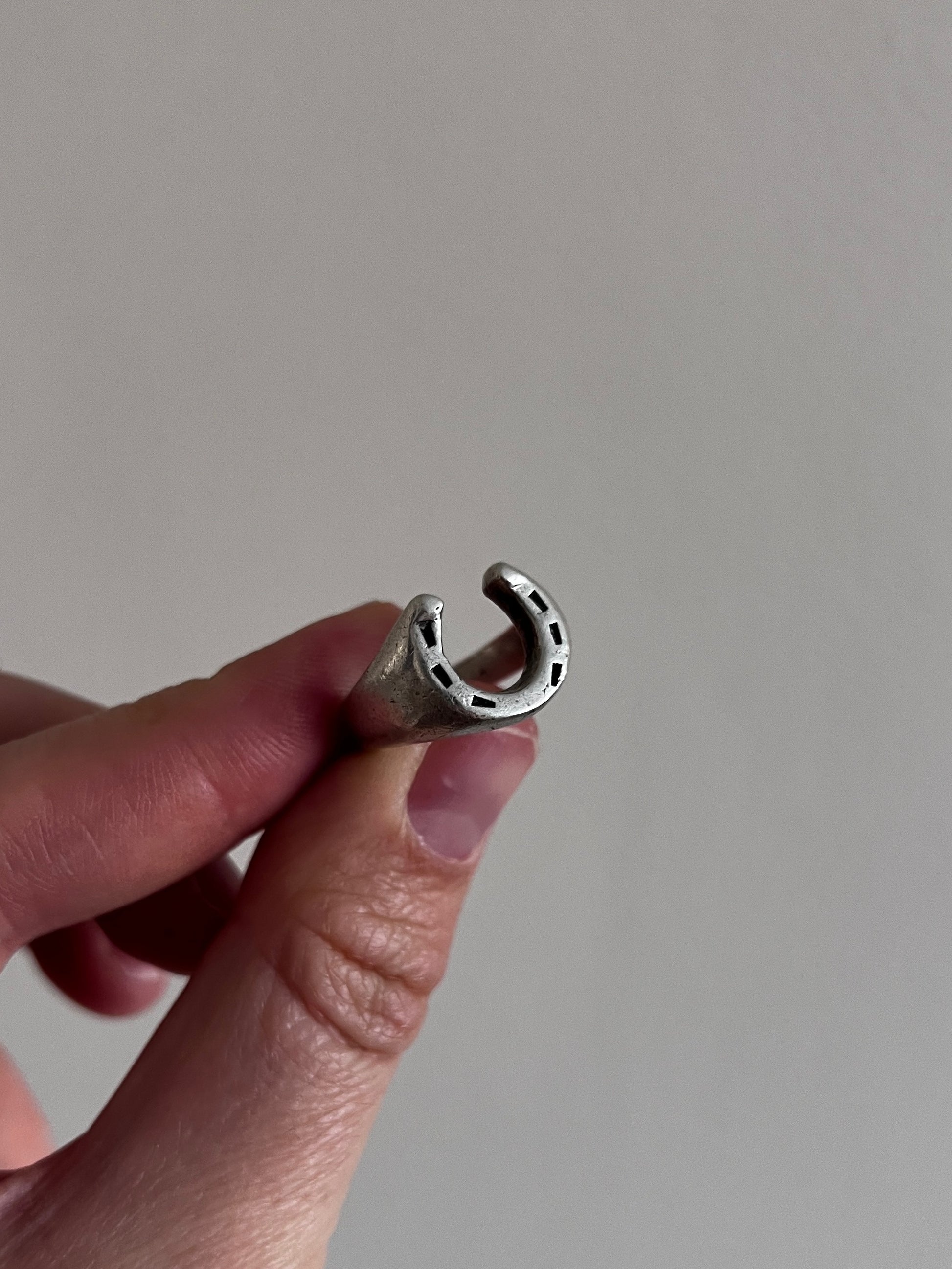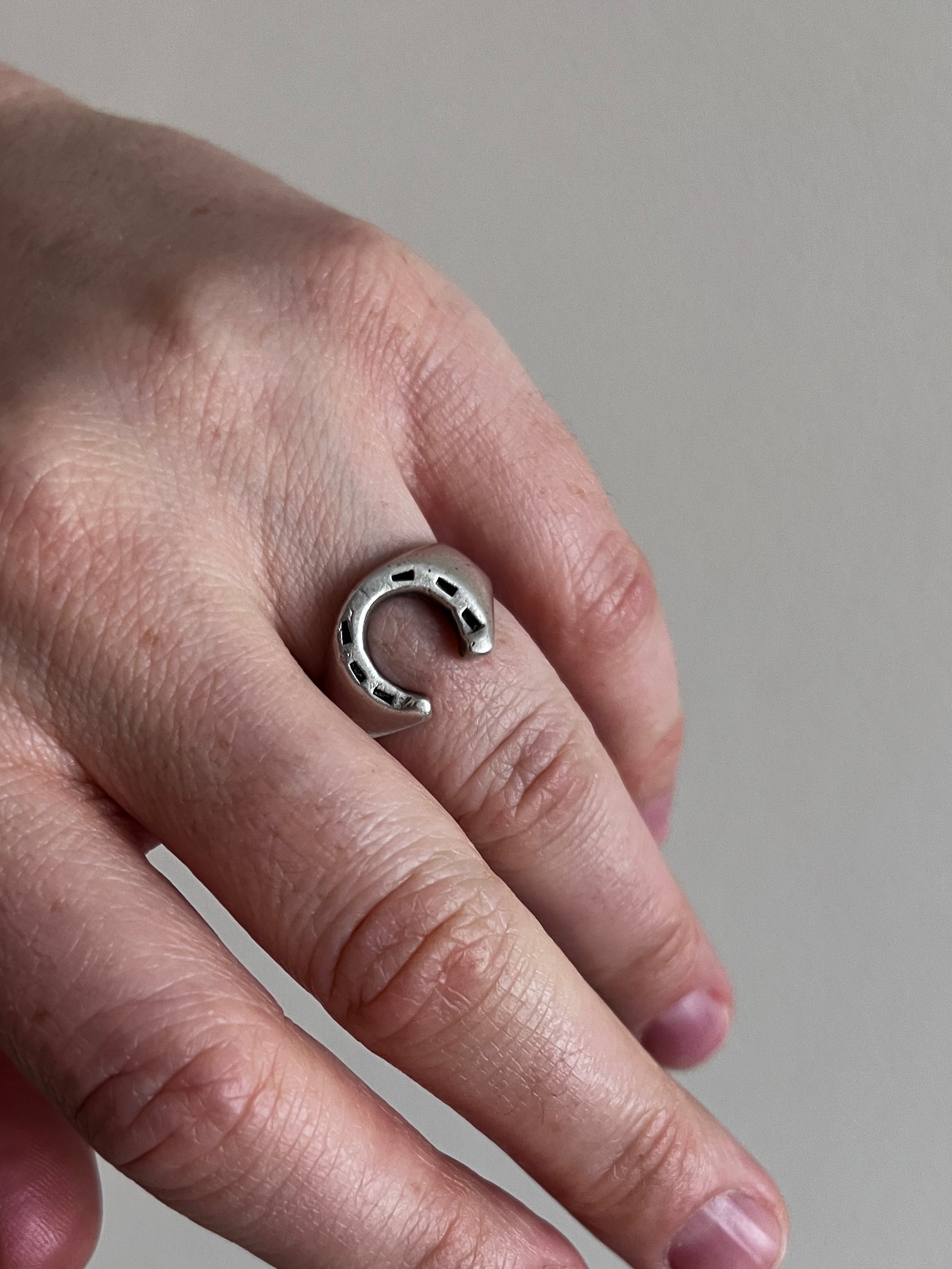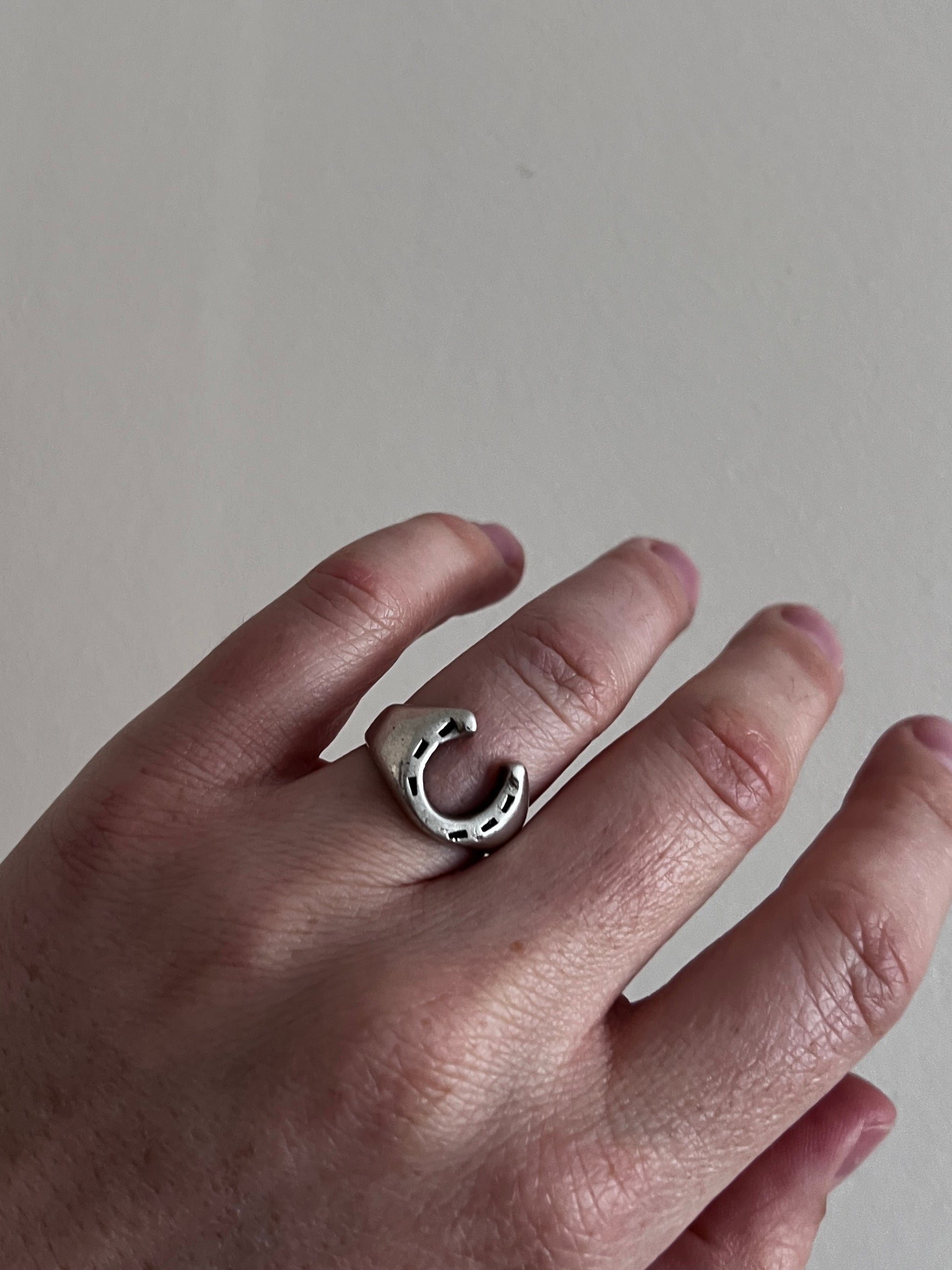 Forma pierścionka jest zwarta, masywna, z pięknie osadzoną podkową w centrum – nieprzesadzona, ale wyrazista. Sprawdzi się zarówno jako biżuteria codzienna, jak i jako prezent z ukrytym znaczeniem. W zależności od tego, jak zostanie założony może pełnić różne funkcje: z podkową skierowaną ku górze zatrzymywać szczęście dla właściciela lub ku dołowi – dzielić się nim z otoczeniem.