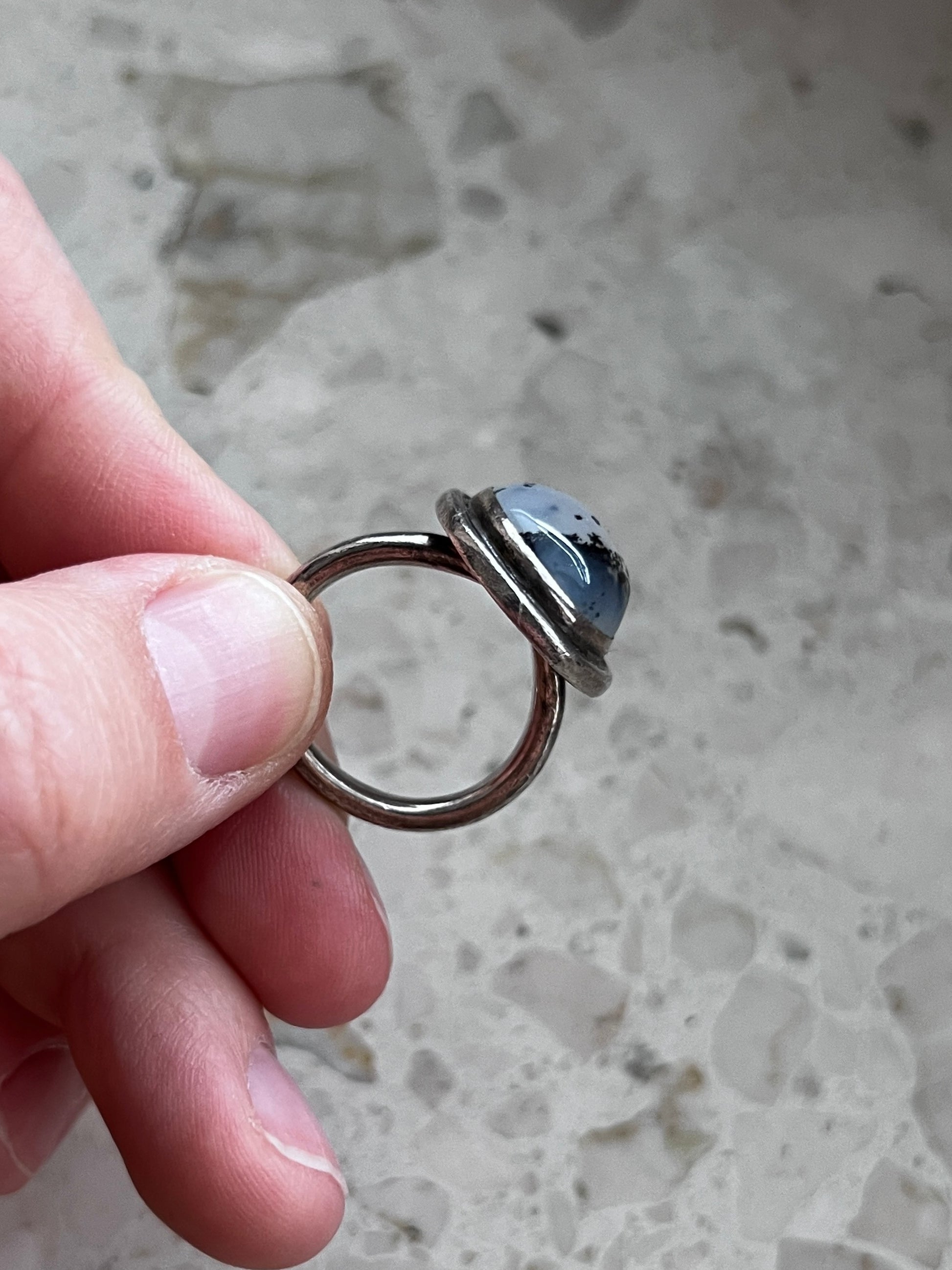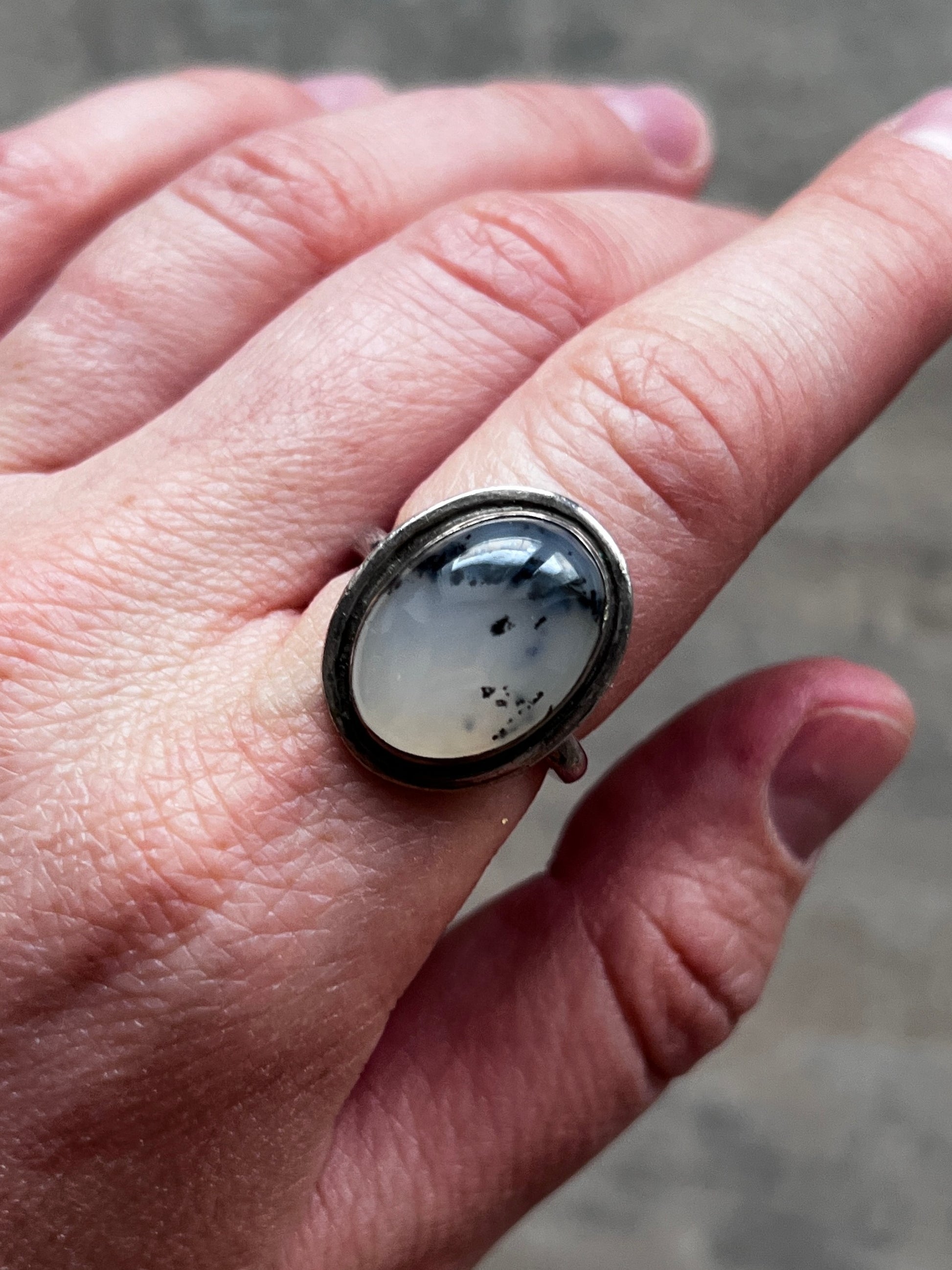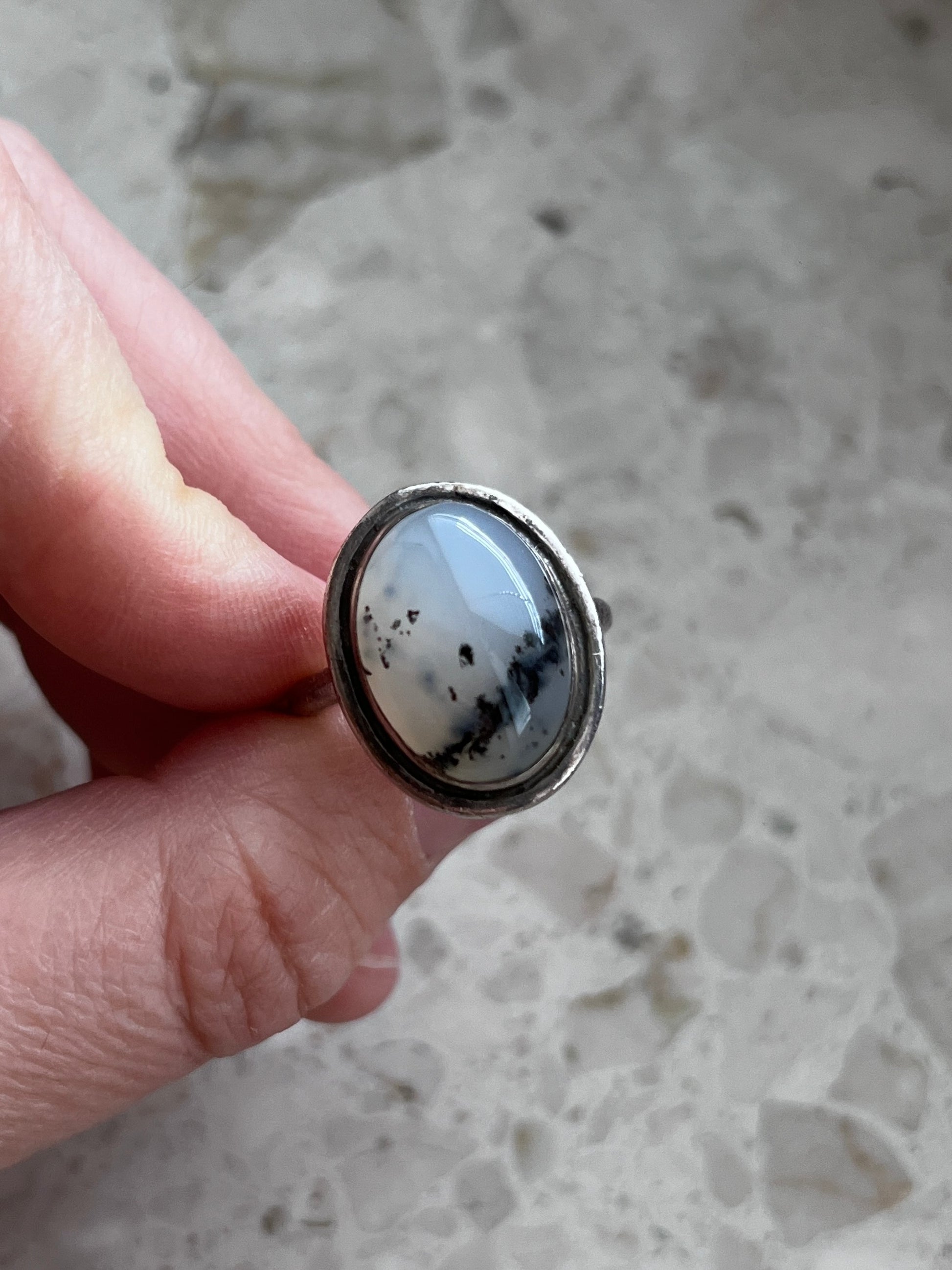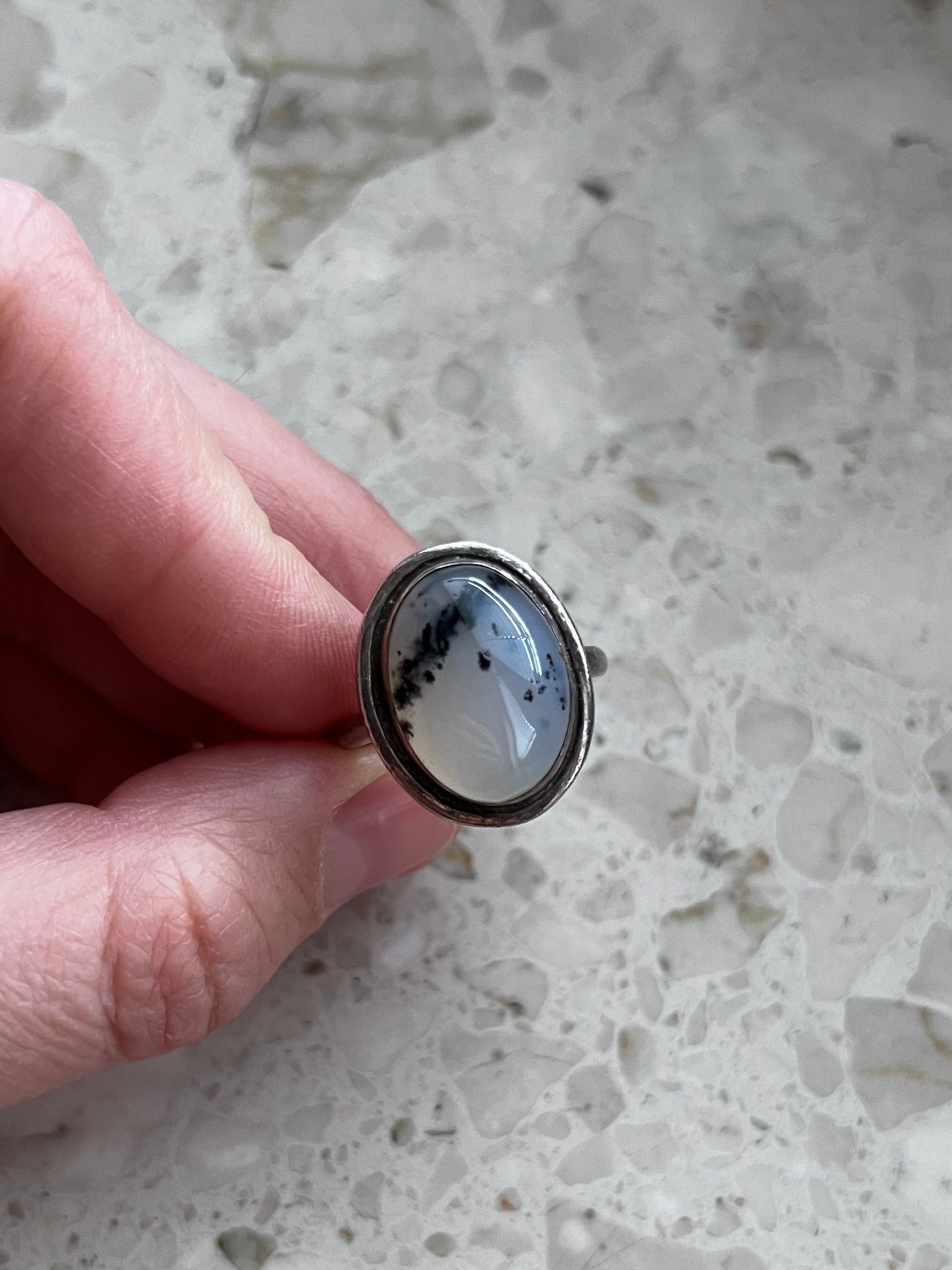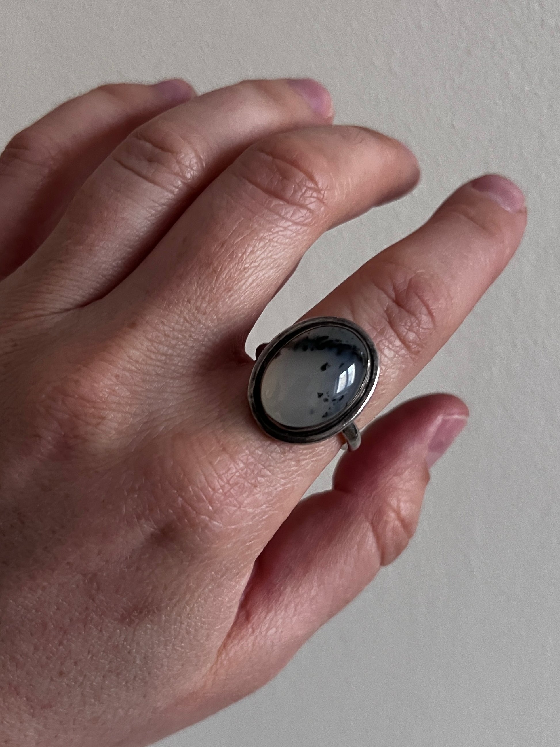 Mglisty – srebrny pierścionek z agatem dendrytowym